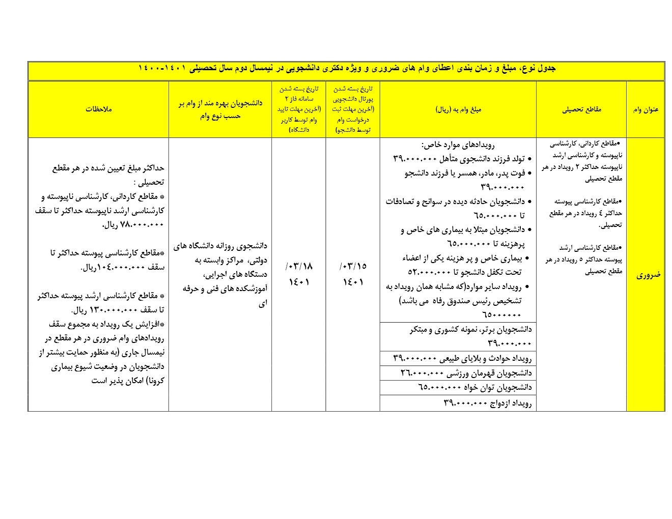 آغاز ثبت نام وام های ضروری ویژه دانشجویان روزانه نیمسال دوم تحصیلی401-400