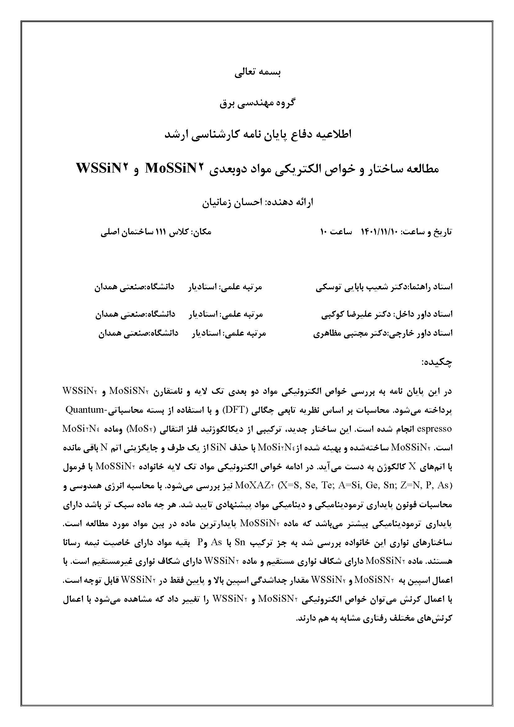 اطلاعیه دفاع دانشجوی کارشناسی ارشد - احسان زمانیان
