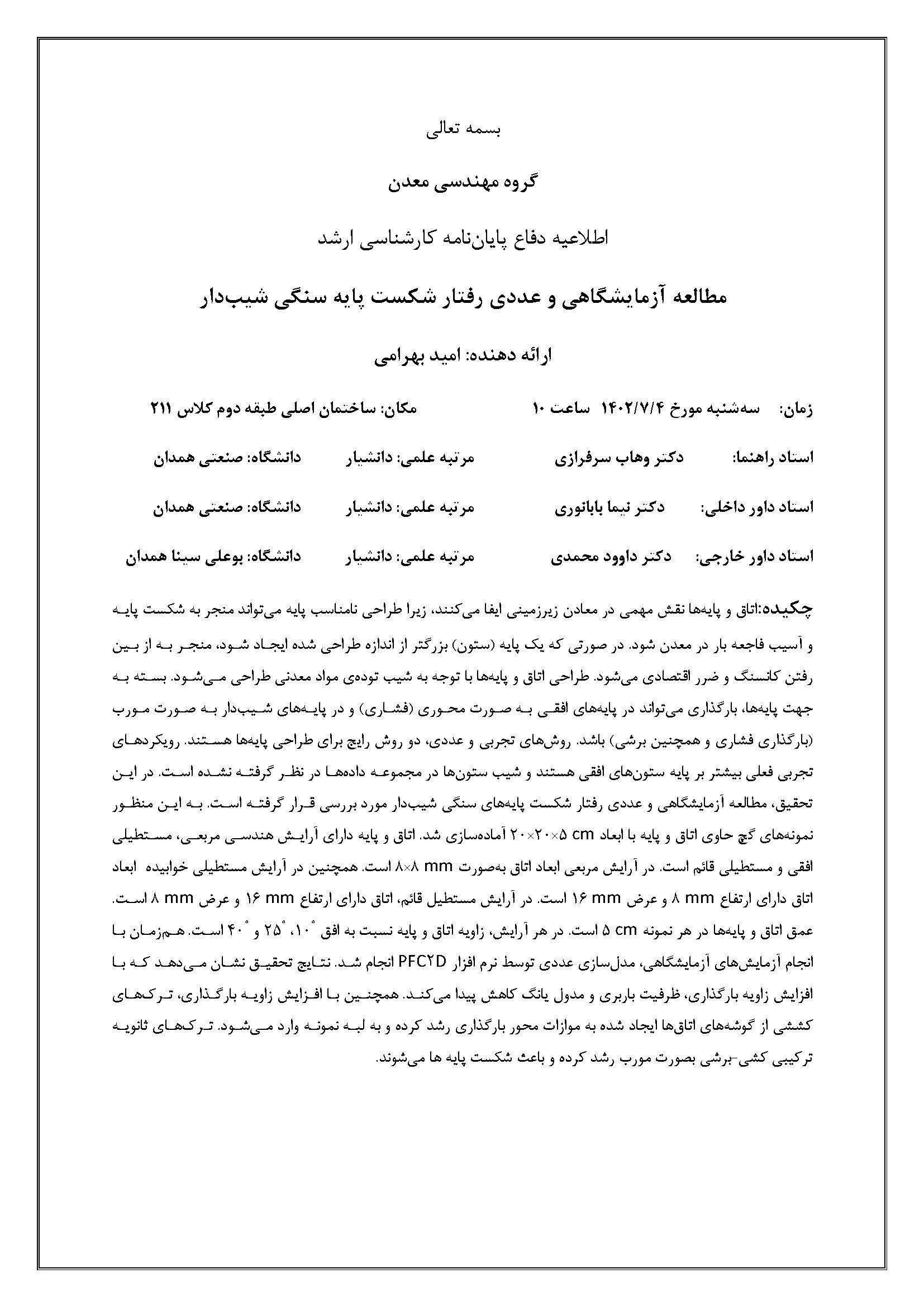 اطلاعیه دفاع دانشجوی کارشناسی ارشد- امید بهرامی