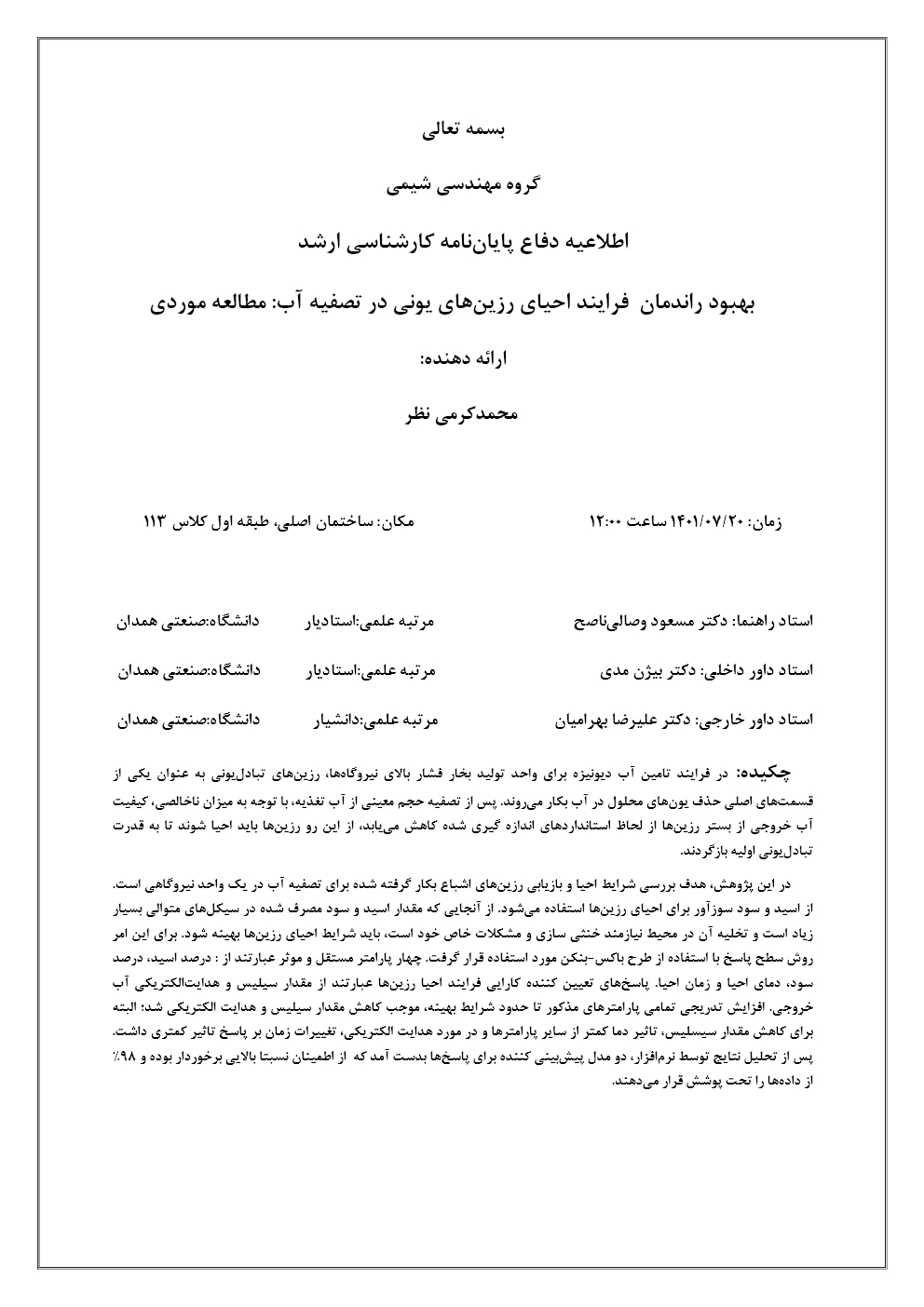 اطلاعیه دفاع دانشجوی کارشناسی ارشد -محمد کرمی نظر