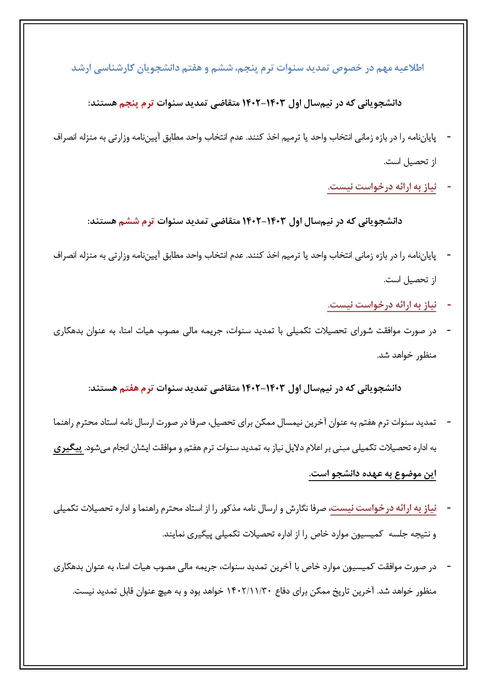 اطلاعیه مهم در خصوص تمدید سنوات دانشجویان کارشناسی ارشد ترم پنجم، ششم و هفتم