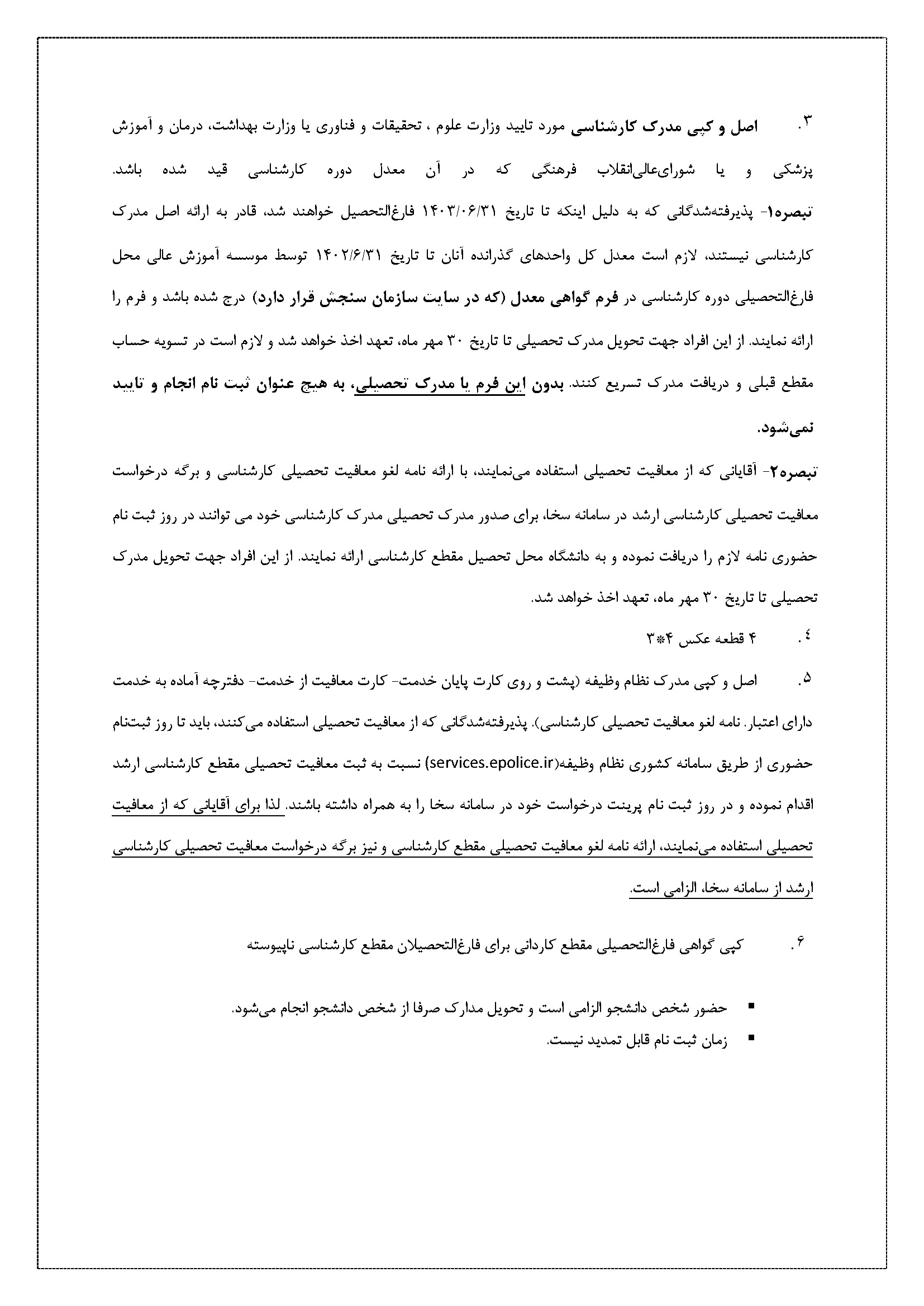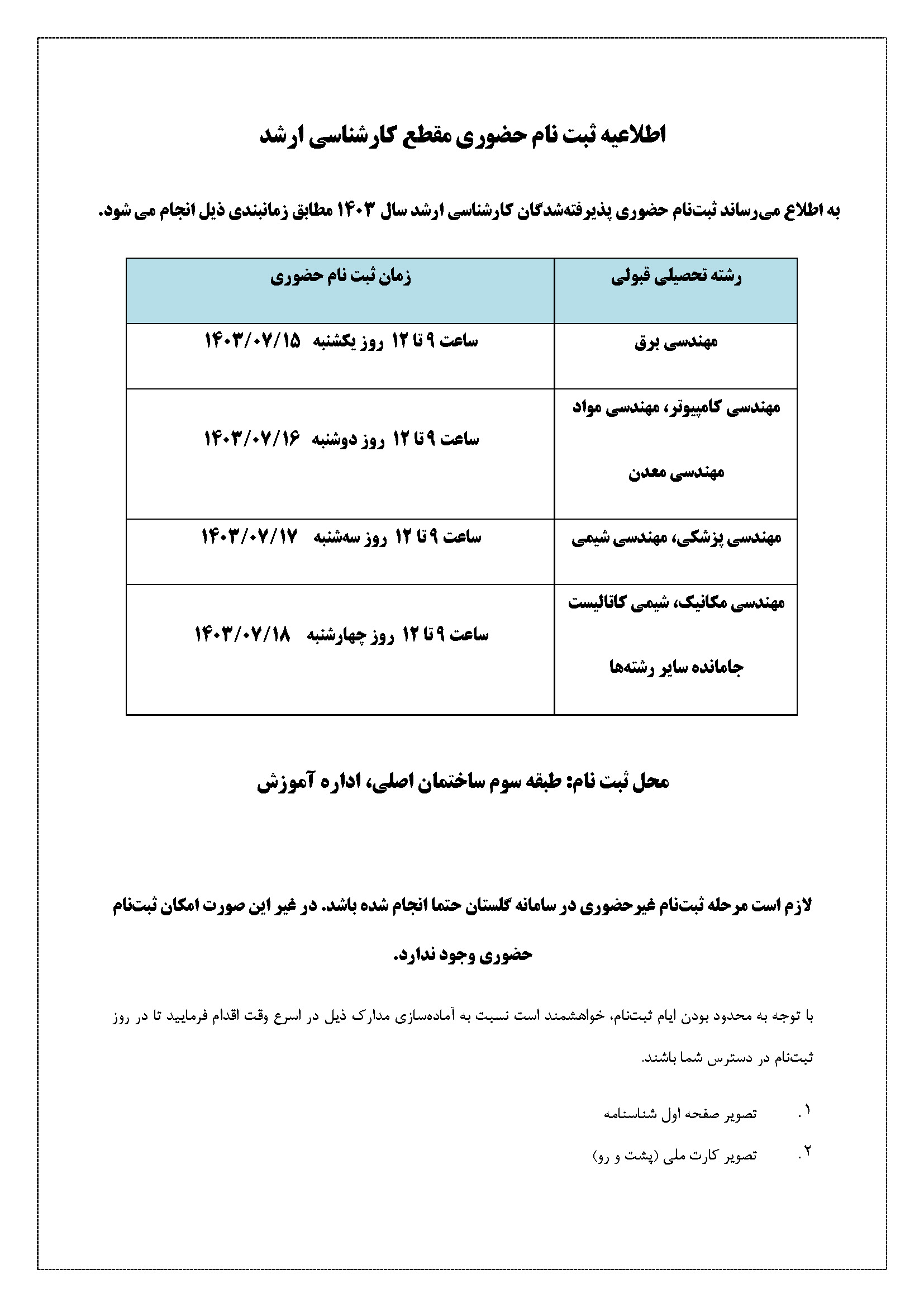 اطلاعیه مهم در خصوص ثبت نام حضوری مقطع کارشناسی ارشد