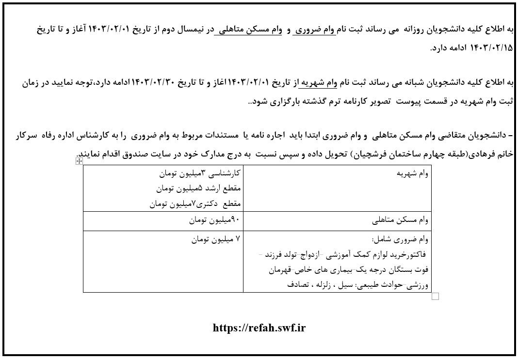 اطلاعیه وام های دانشجویی نیمسال دوم 1403-1402