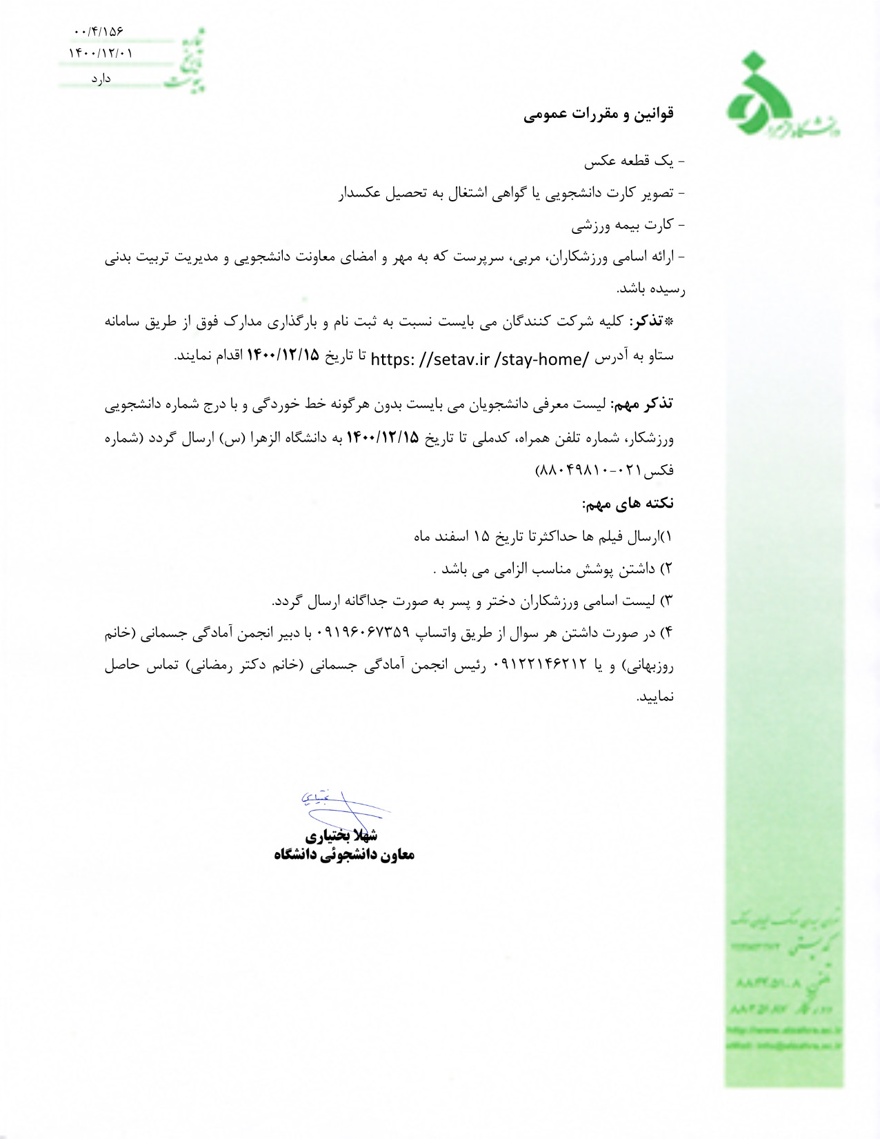 بخشنامه عمومی و فنی مسابقات مجازی آمادگی جسمانی قهرمانی دانشگاه های کشور