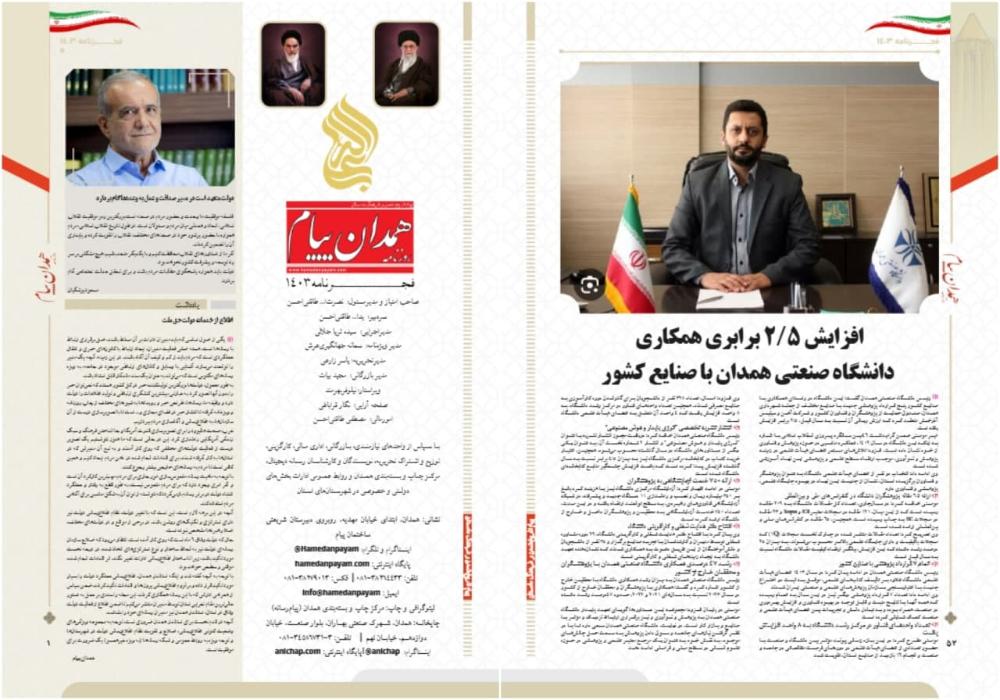 رییس دانشگاه صنعتی همدان گفت: این دانشگاه در راستای همکاری با صنایع کشور پنج قرارداد پژوهشی جدید با صنایع مختلف از جمله شهرداری همدان، صندوق حمایت از پژوهشگران و فناوران کشور و شرکت آهن و سیلیس آذرخش منعقد شد که ارزش ریالی آن نسبت به سال قبل، ۲/۵ برابر افزایش یافته است.