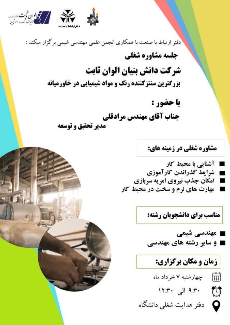 دفتر ارتباط با صنعت با همکاری انجمن علمی مهندسی شیمی، برگزار میکند: