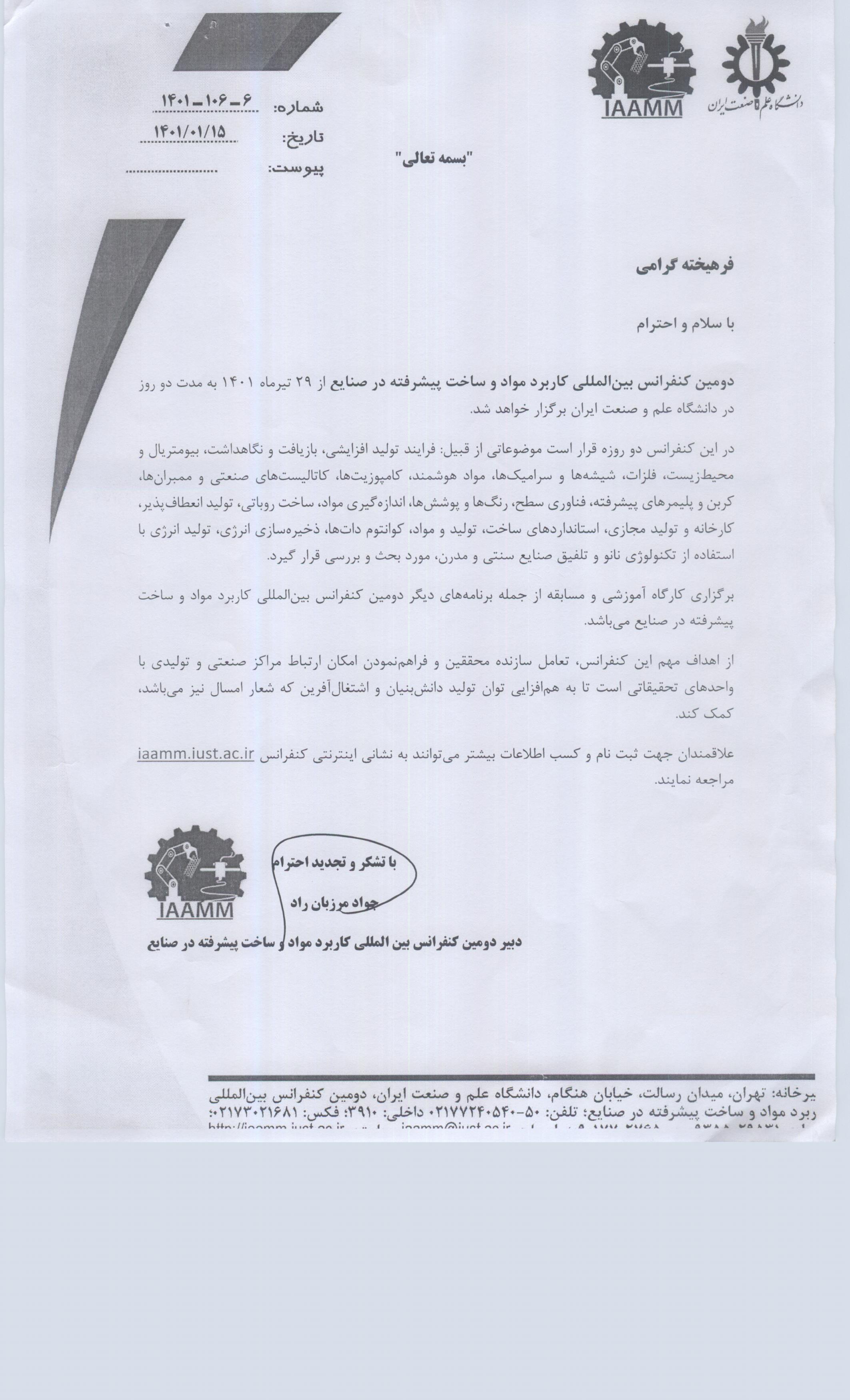 دومین کنفرانس بین المللی کاربرد مواد و ساخت پیشرفته