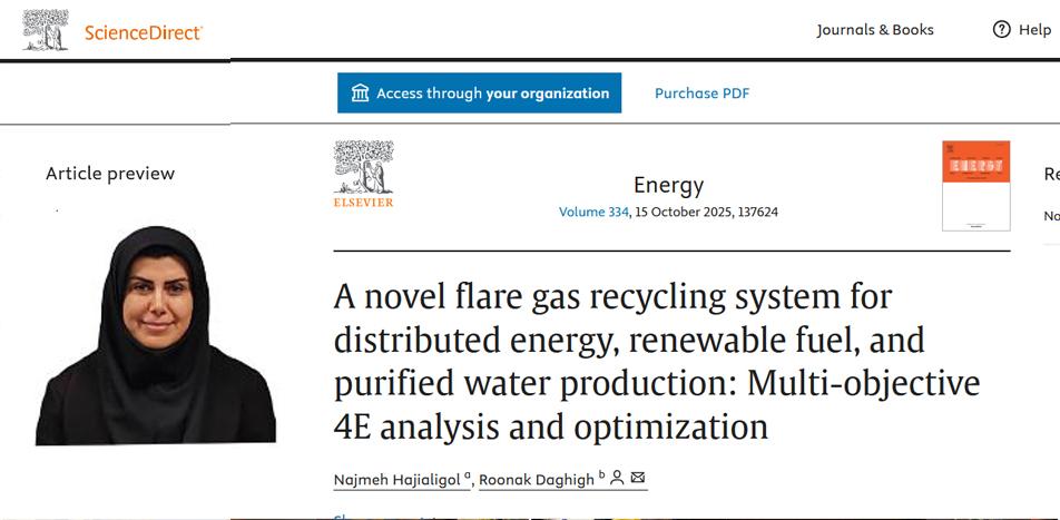چاپ مقاله عضو هیات علمی دانشگاه صنعتی همدان در مجله Energy