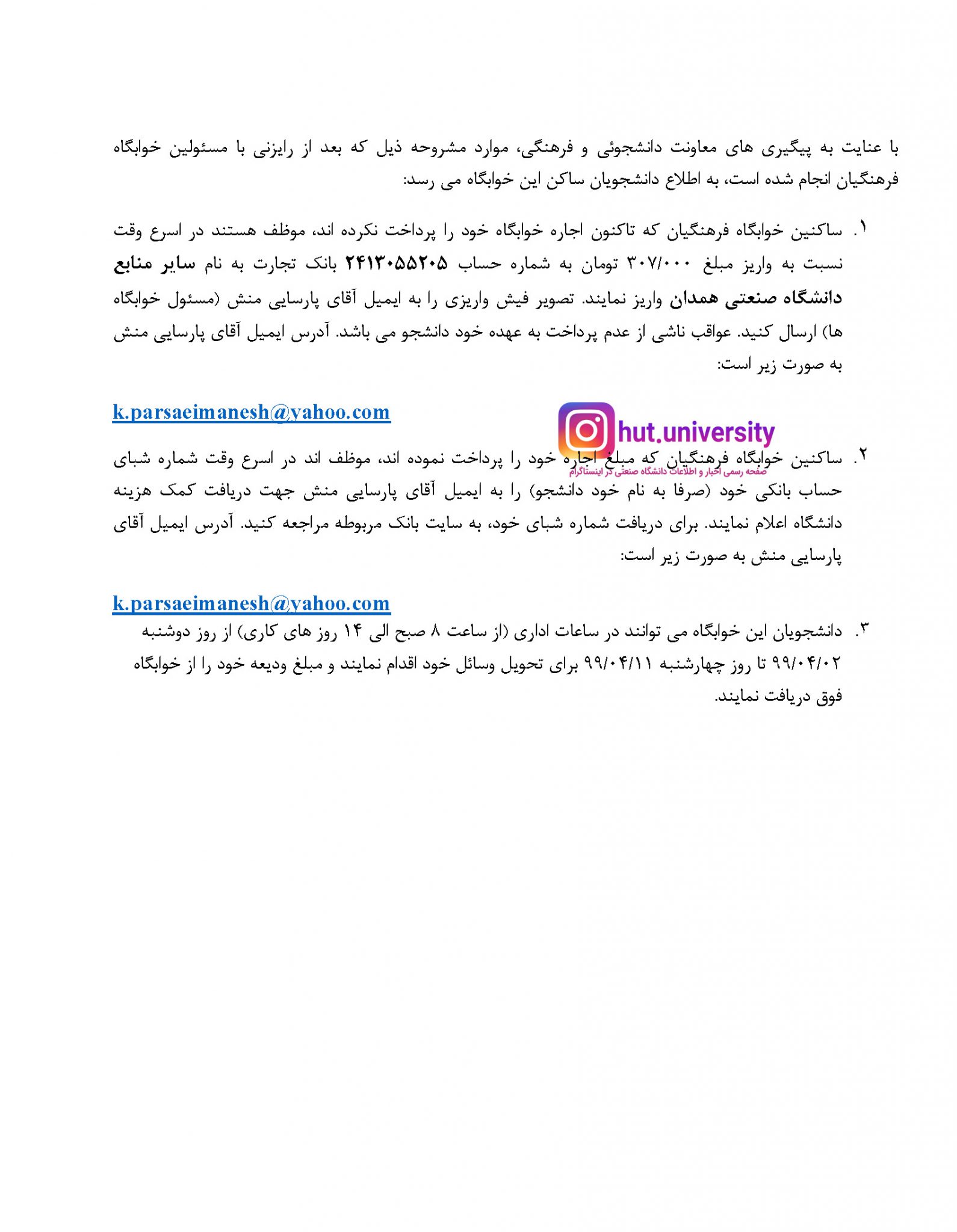 اطلاعیه خوابگاه دانشجوئی “فرهنگیان”