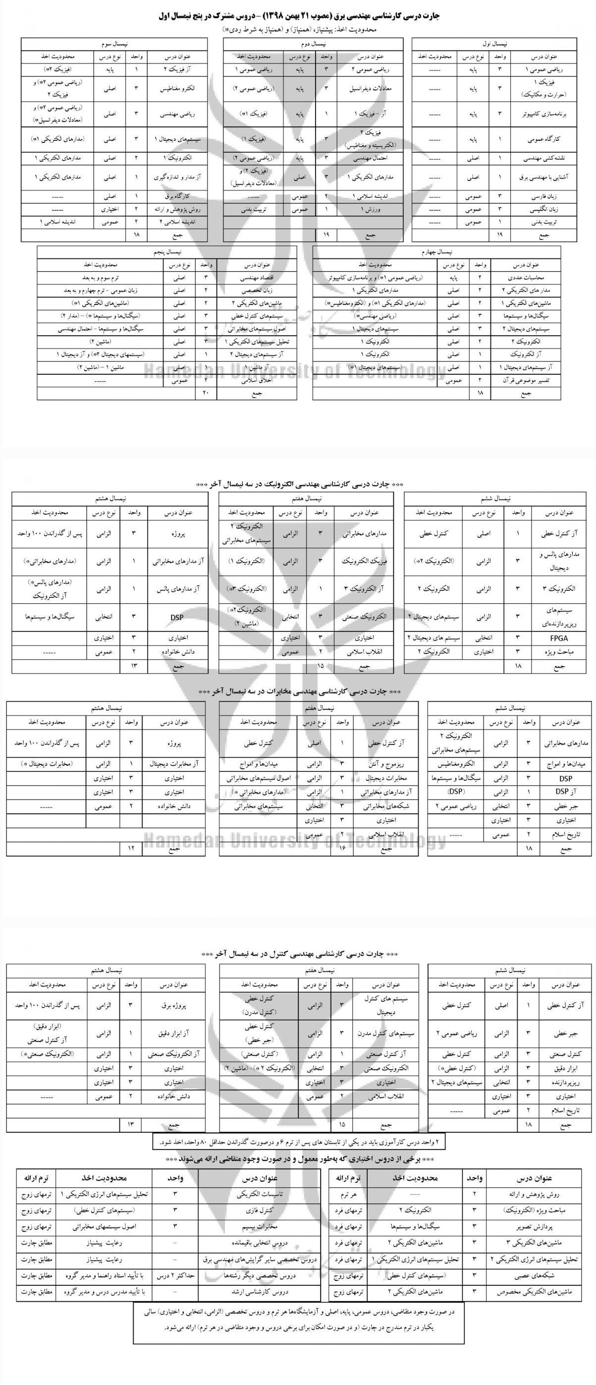 چارت درسی کارشناسی مهندسی برق (مصوب ۲۱ بهمن ۱۳۹۸)