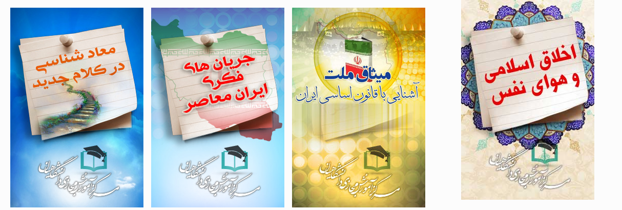 جریان های فکری ایران معاصر (استاد خسروپناه)، معاد شناسی در کلام جدید (استاد خسرو پناه)، اخلاق و هوای نفس (آیت الله شجاعی)، آشنایی با قانون اساسی جمهوری اسلامی ایران