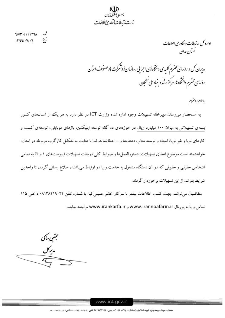 بسته تسهیلاتی ۱۰۰ میلیارد ریالی ICT