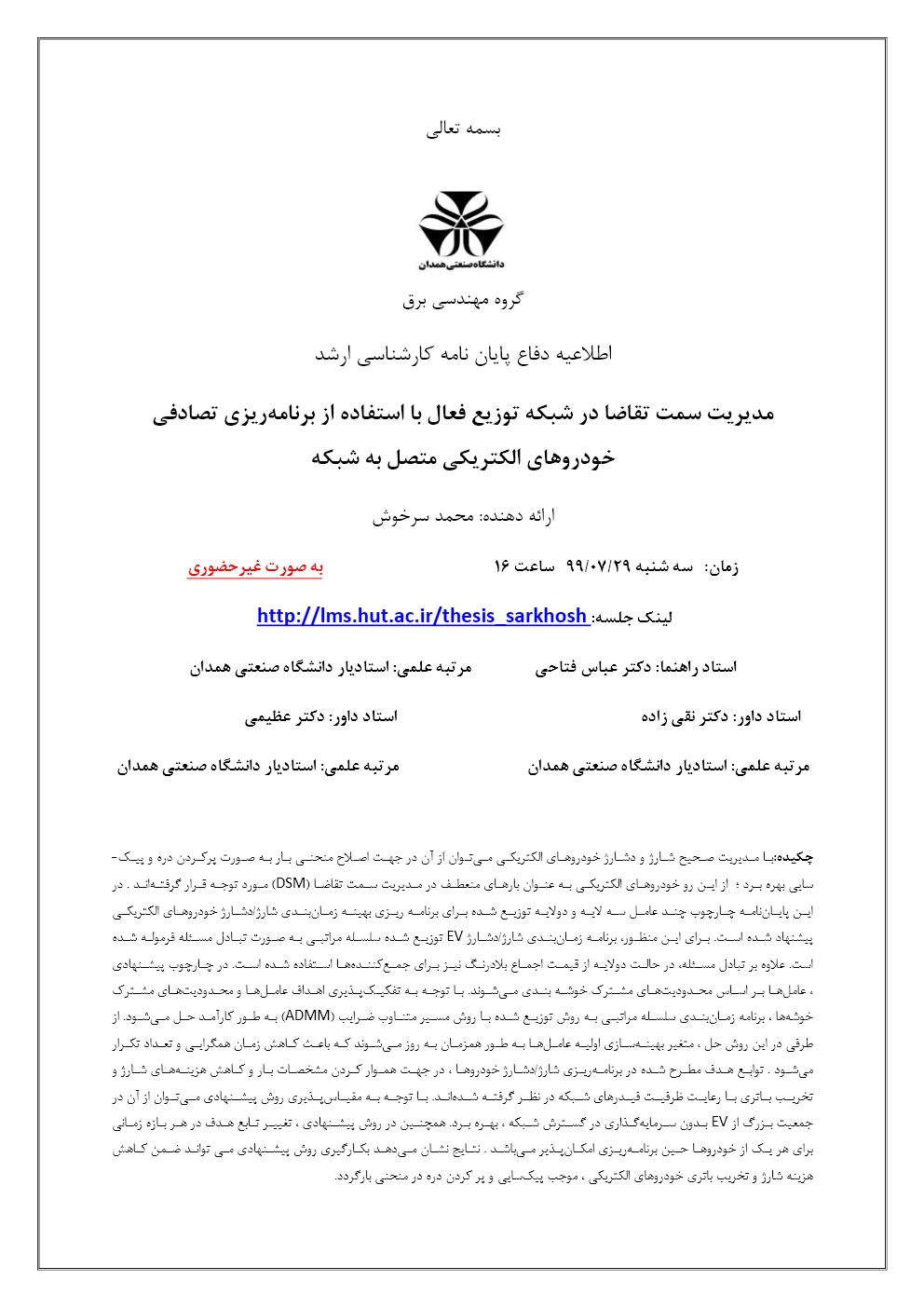 اطلاعیه دفاع دانشجوی کارشناسی ارشد – محمد سرخوش