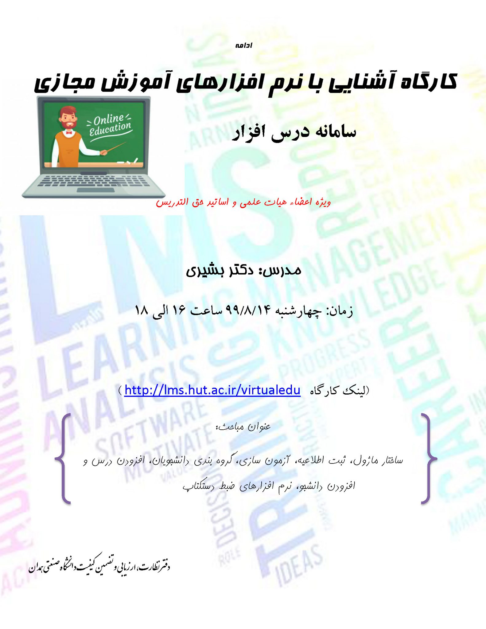 کارگاه آشنایی با نرم افزارهای آموزش مجازی (ویژه اساتید)