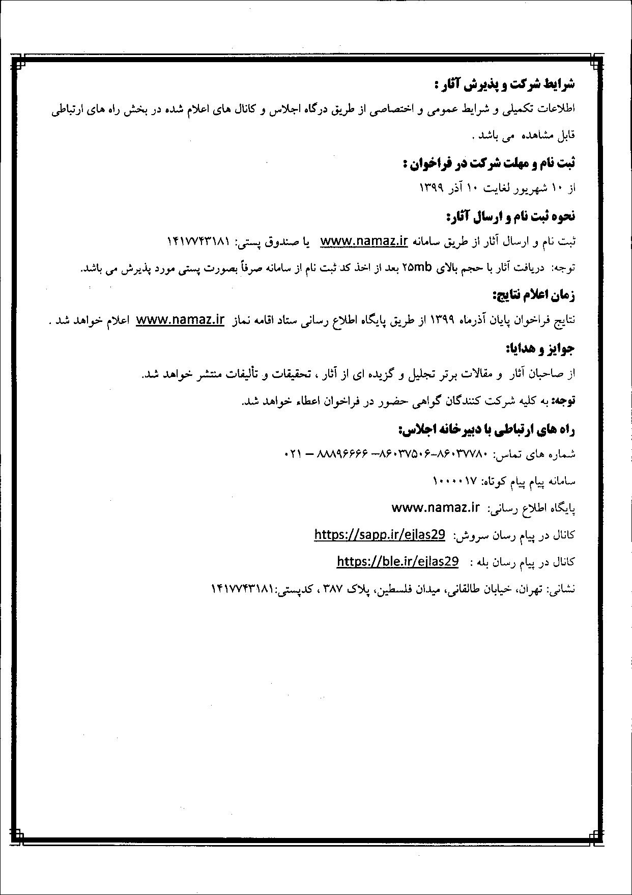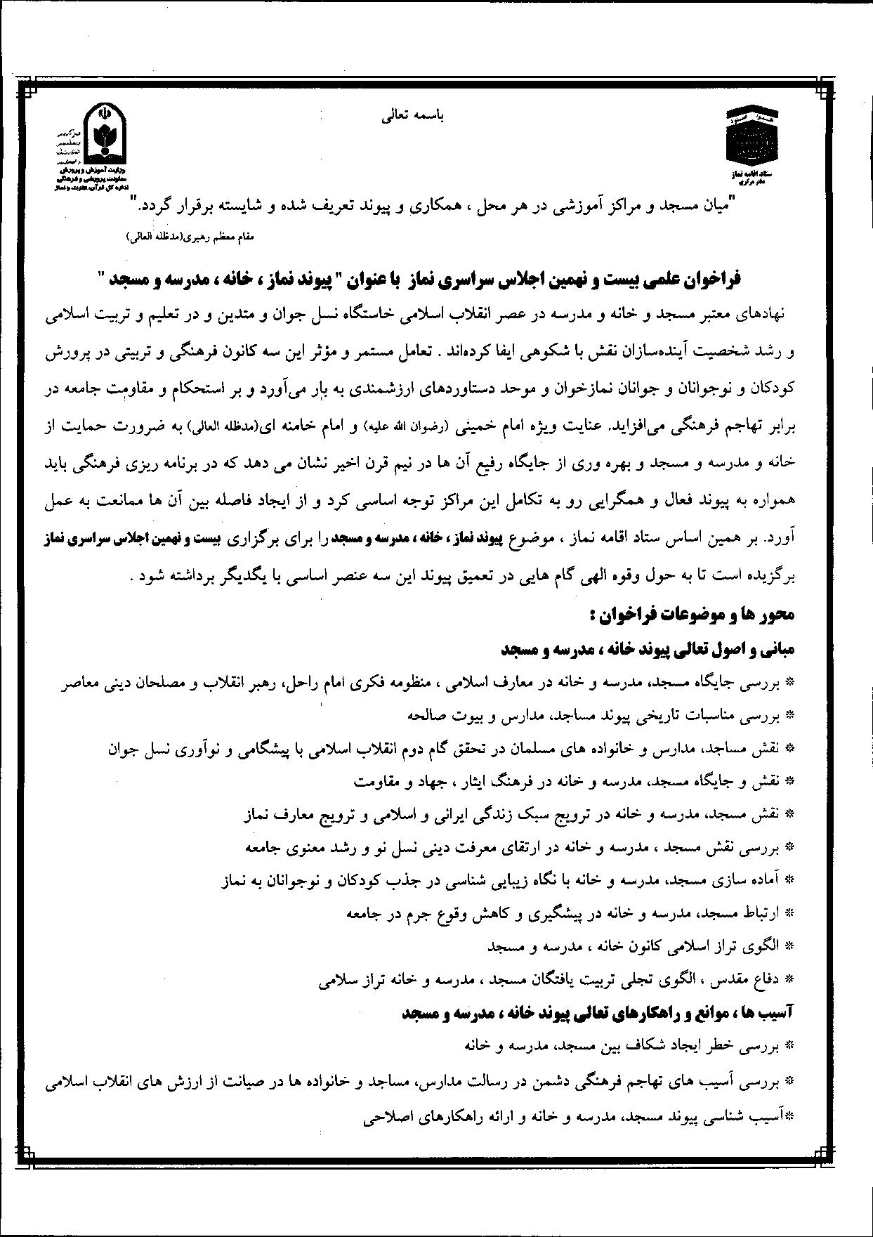 فراخوان اجلاس سراسری نماز