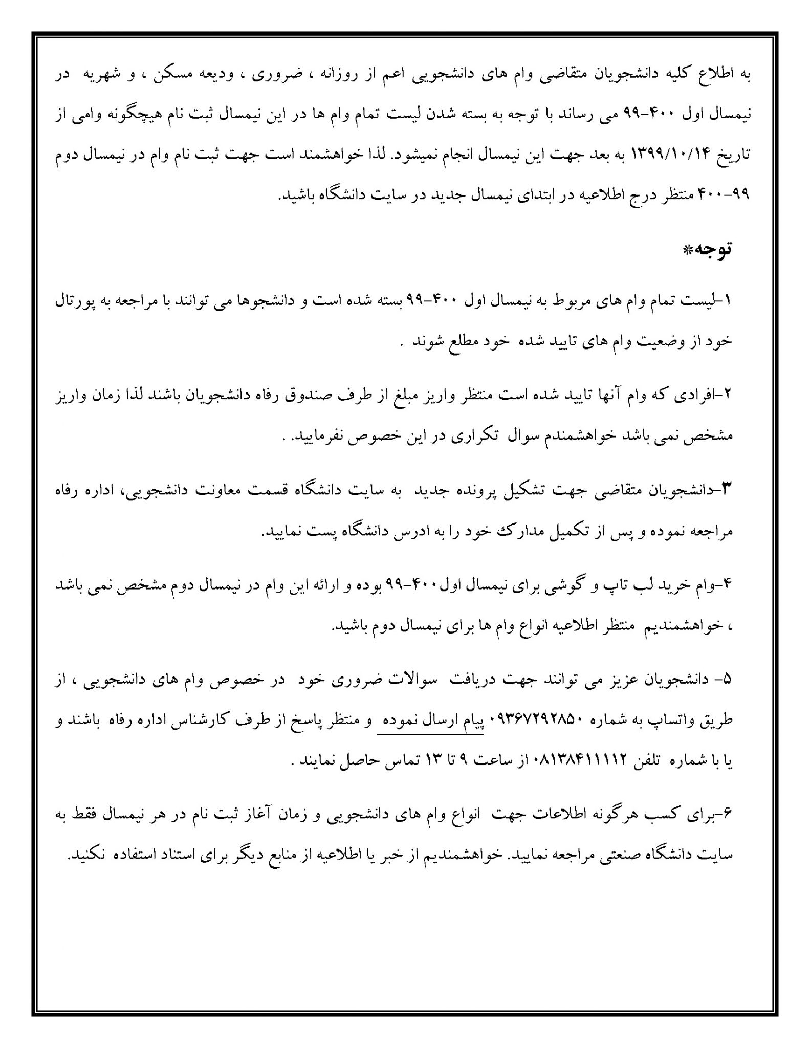 پایان ثبت نام وام های دانشجویی در نیمسال اول ۴۰۰-۹۹