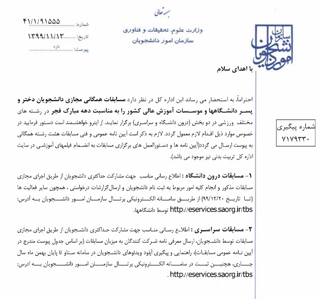 مسابقات ورزش همگانی دانشجویان دختر و پسر به مناسبت دهه فجر