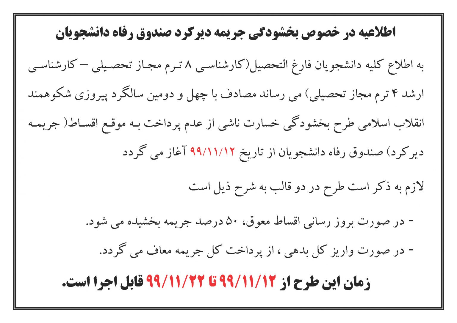 اطلاعیه طرح بخشودگی دانش آموختگان تا تاریخ ۳۰ بهمن ۹۹ تمدید شد