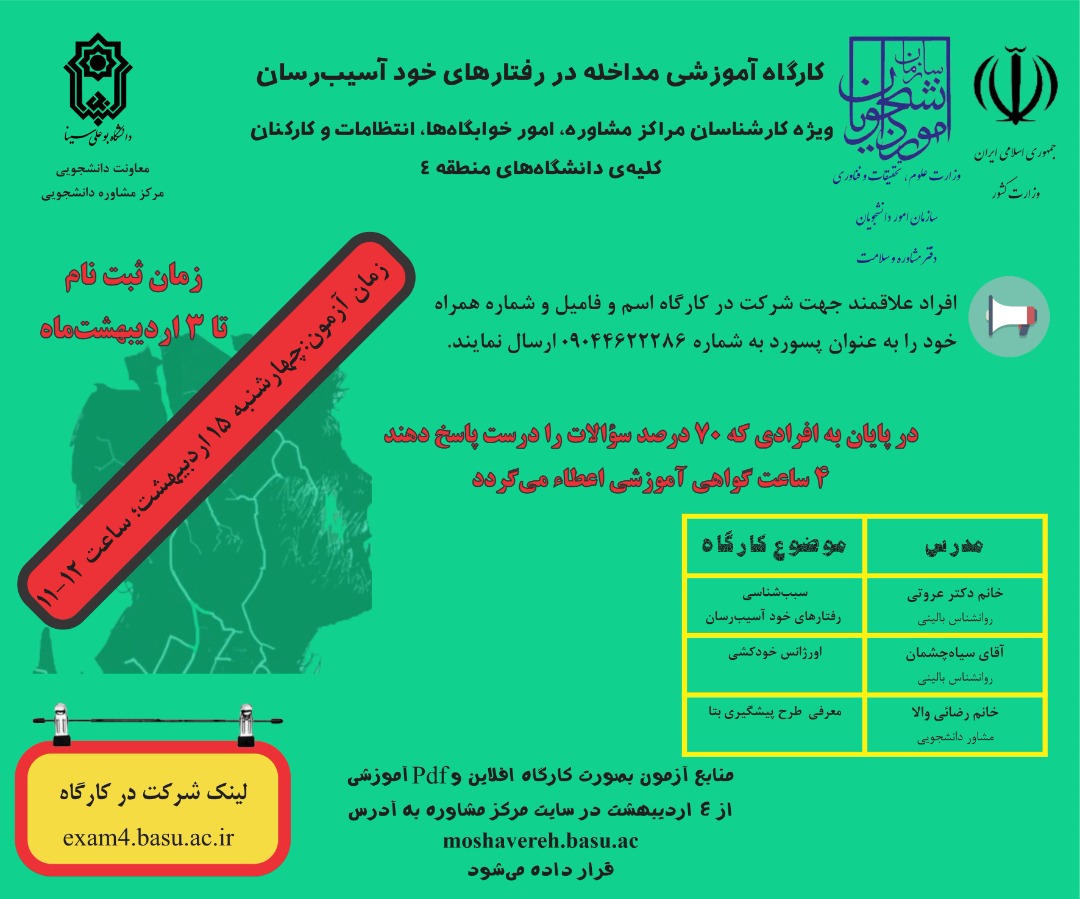 کارگاه آموزشی مداخله در رفتارهای خودآسیب رسان