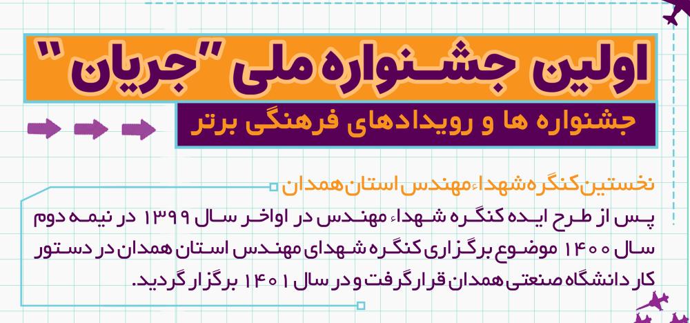 طرح دانشگاه صنعتی همدان با عنوان «نخستین کنگره شهدای مهندس استان در دانشگاه صنعتی همدان» در اولین جشنواره ملی «جریان» شایسته تقدیر شد.