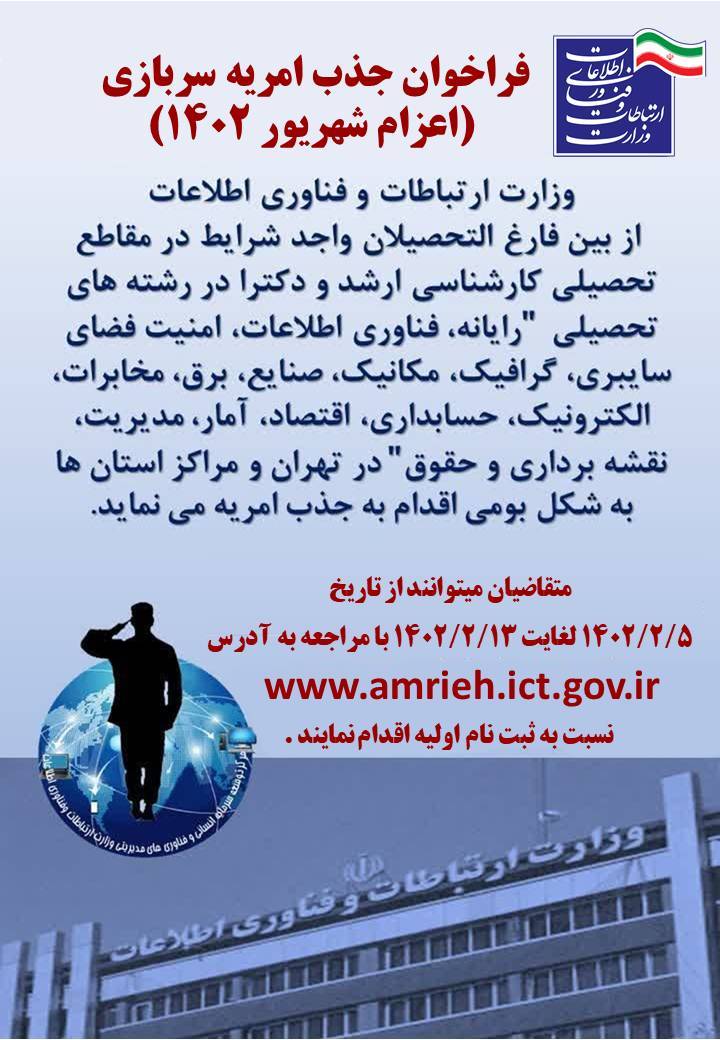 اطلاعیه فراخوان امریه وزارت ارتباطات