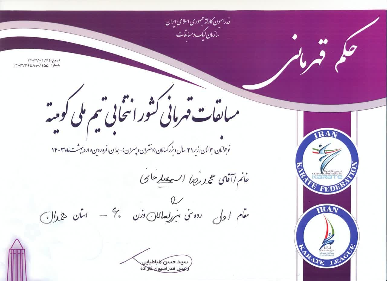 محمدرضا اسمعیلخانی؛ دانشجوی رشته مهندسی برق دانشگاه صنعتی همدان به عضویت تیم ملی کاراته درآمد.