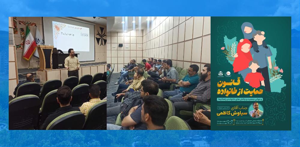 دوره قانون تحکیم خانواده، جوانی جمعیت، چالش‌های خانواده و راهکارها از سری دوره‌های مرکز جامع صلاحیت حرفه‌ای صنعت آب و برق روزهای ۱۹ و ۲۰ شهریورماه برگزار شد.