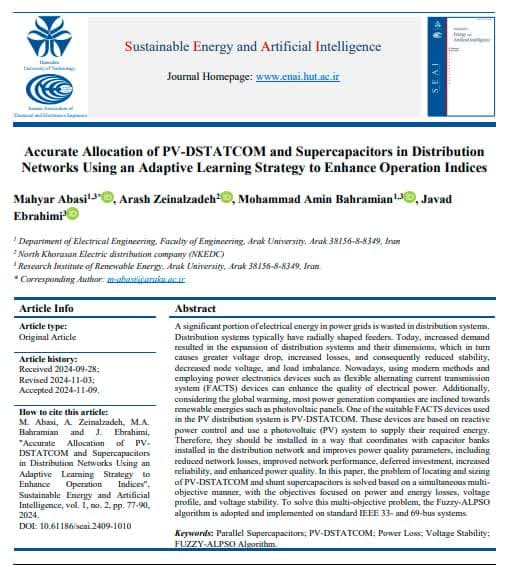 مقاله هایی که در این شماره اول از "نشریه انرژی پایدار و هوش مصنوعی" Sustainable Energy and Artificial Intelligence انتشار یافت: