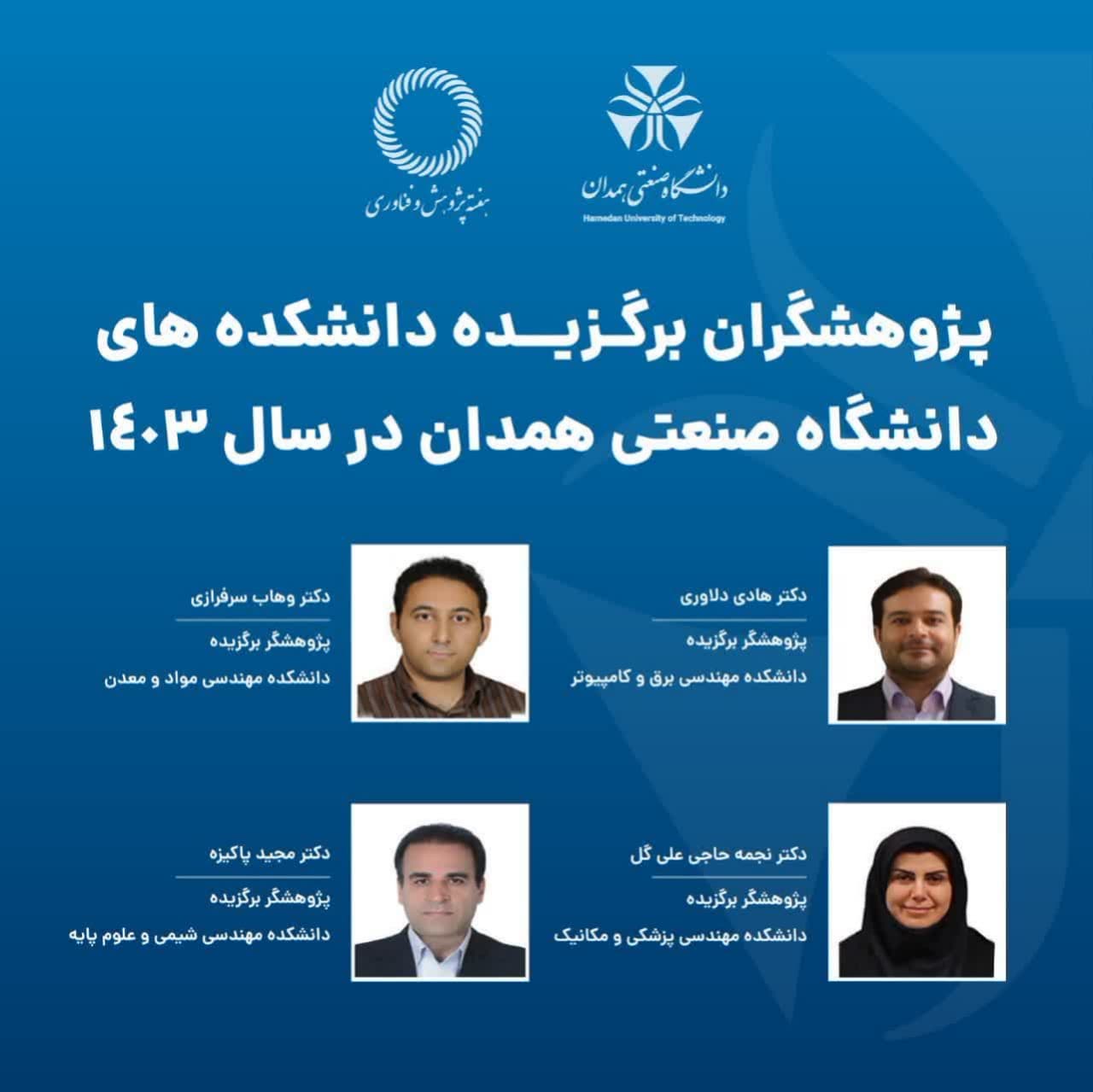 پژوهشگران برگزیده دانشکدههای دانشگاه صنعتی همدان در سال ۱۴۰۳ انتخاب و معرفی شدند.