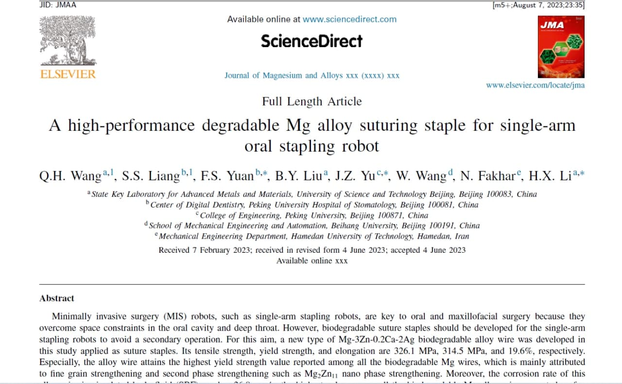 در مجله Journal of Magnesium and Alloys  با ضریب تاثیر 17.6 به چاپ رسیده است.