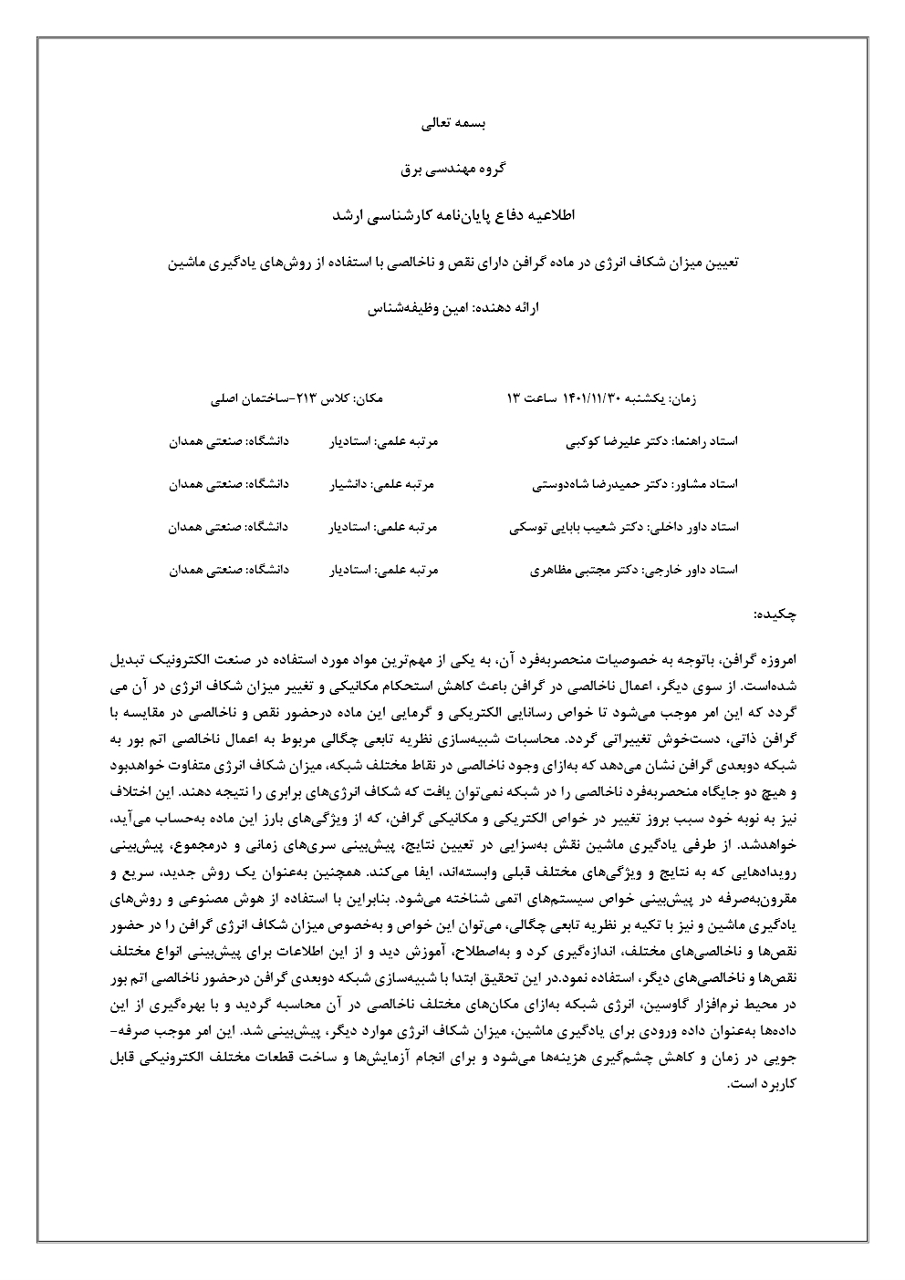 اطلاعیه دفاع دانشجوی کارشناسی ارشد - امین وظیفهشناس