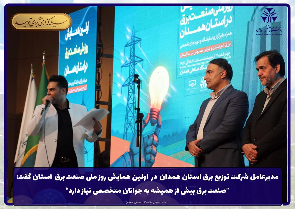 مدیرعامل شرکت توزیع برق استان همدان در اولین همایش روز ملی صنعت برق استان بیان کرد: صنعت برق بیش از همیشه به جوانان متخصص نیاز دارد.